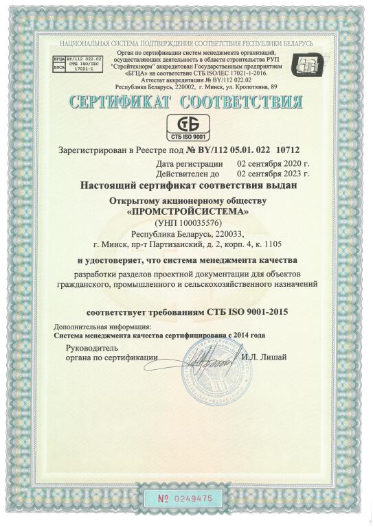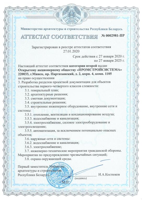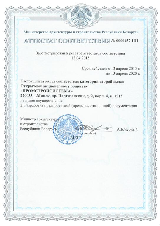 Обеспечение выполнения конкурентоспособных работ по разработке проектно-сметной документации высокого качества, что является залогом успешной и стабильной работы, обеспечение доверия со стороны заказчиков. (Устав ОАО «Промстройсистема»).